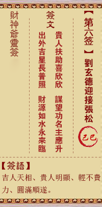 財神靈簽第6簽解籤 財神靈簽第六簽